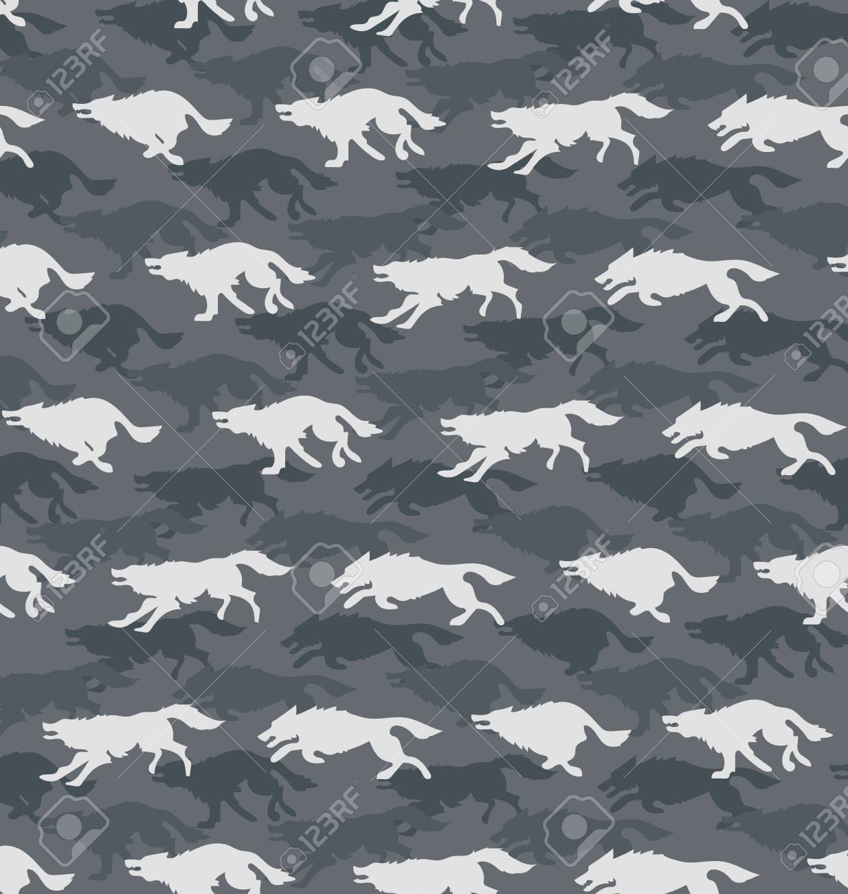Running Wolves Gray Background Seamless Pattern Design For